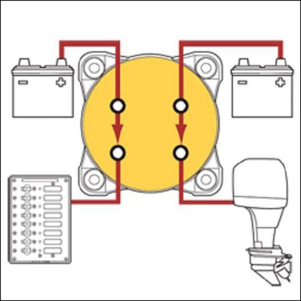 * Selector 4 Position. Switches isolated battery banks to all loads or combines battery banks to all loads. Includes AFD