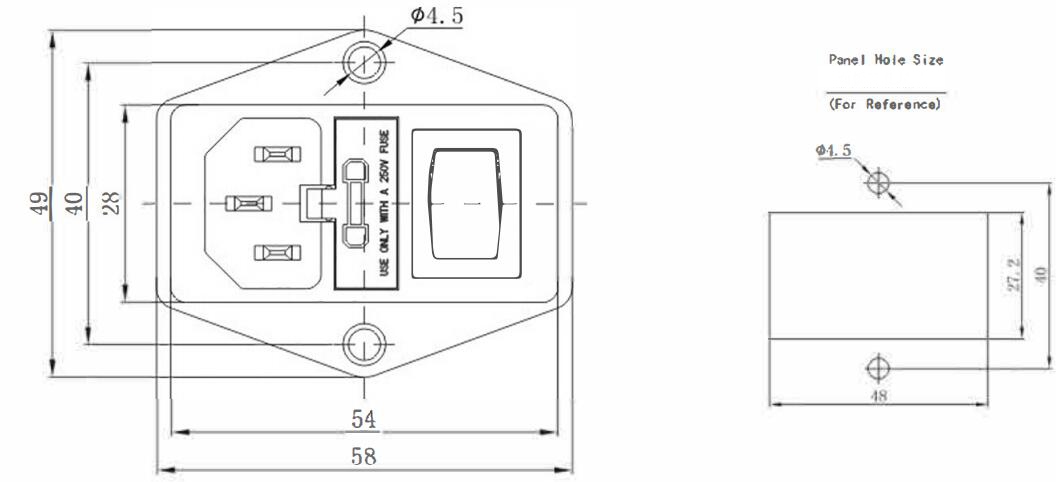 Specification of Rocker Switch AC Power Socket with 5x20 Fuse Holder